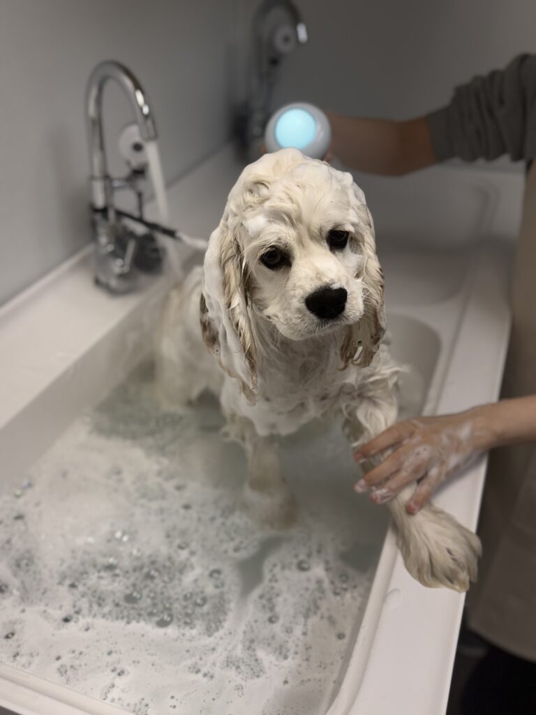 Our grooming is more than a bath — it’s a true spa experience. Using a professional spa tub and coat-nourishing treatments, we soothe skin and hydrate every strand. Finished with a touch of Korean-style cuteness, your pup leaves fresh, calm, and camera-ready.